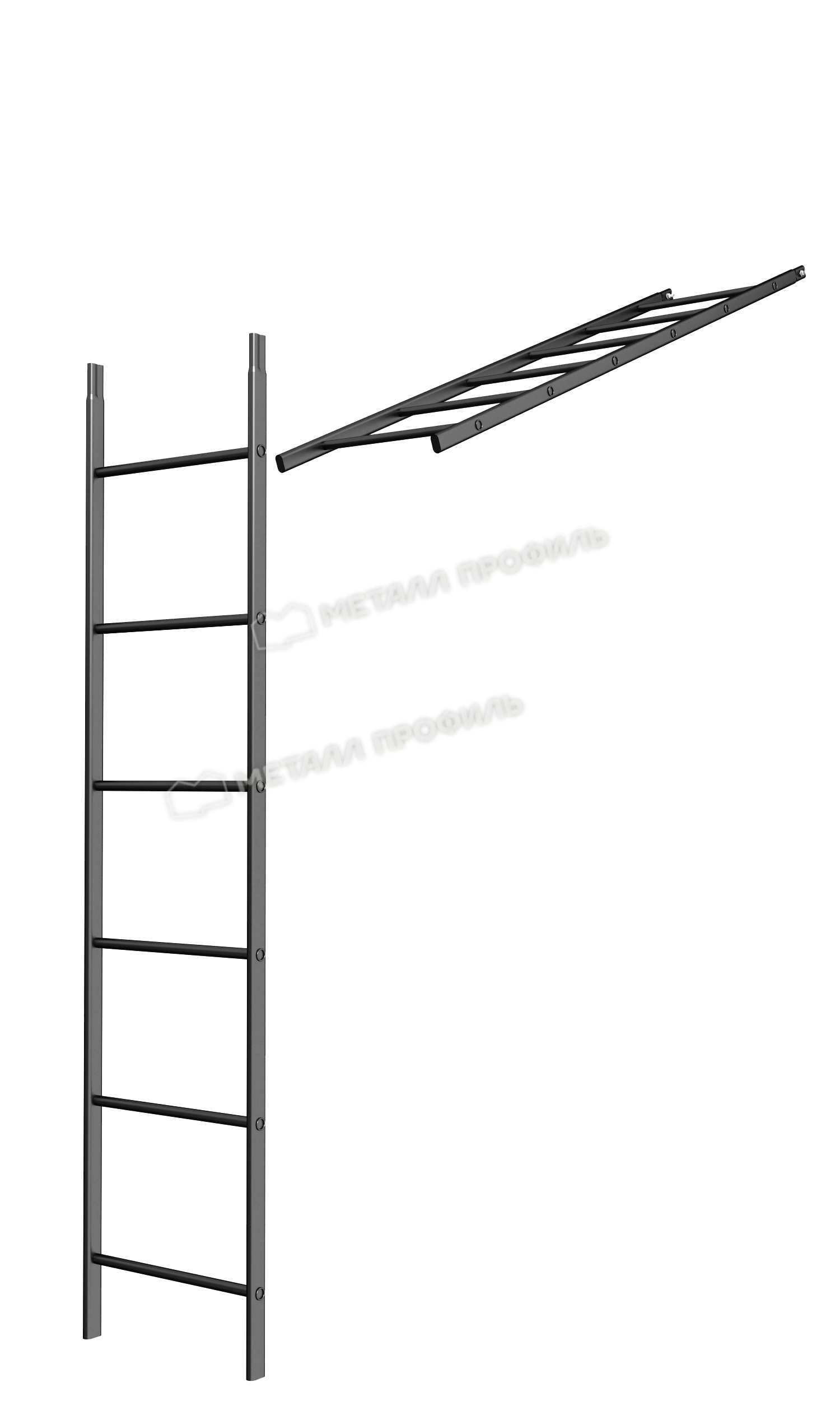 Лестница кровельная стеновая МП дл. 1860 мм без кронштейнов (9005)_1шт и метизы